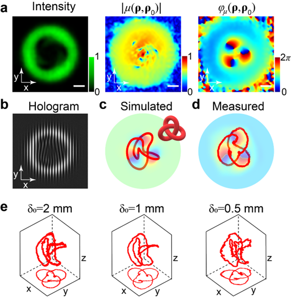 纽结独特而稳定的拓扑结构在物理学、生命科学、光与物质相互作用等领域扮演着重要角色,以纽结为代表的拓扑结构光场调控为新型光场的构建提供了新思路与新自由度。光学奇点是构建纽结拓扑结构的重要途径,如常见的相位、偏振奇点。相干奇点作为光学奇点的新类型,对应非相干光场统计关联零点,其分布可精密调控,与光场的空间相干性紧密相关,已在湍流中的光信息加密及鲁棒探测中展现出重要应用价值。然而,由相干奇点构建的高维结构光场尤其是拓扑结构光场尚未得到充分探索。