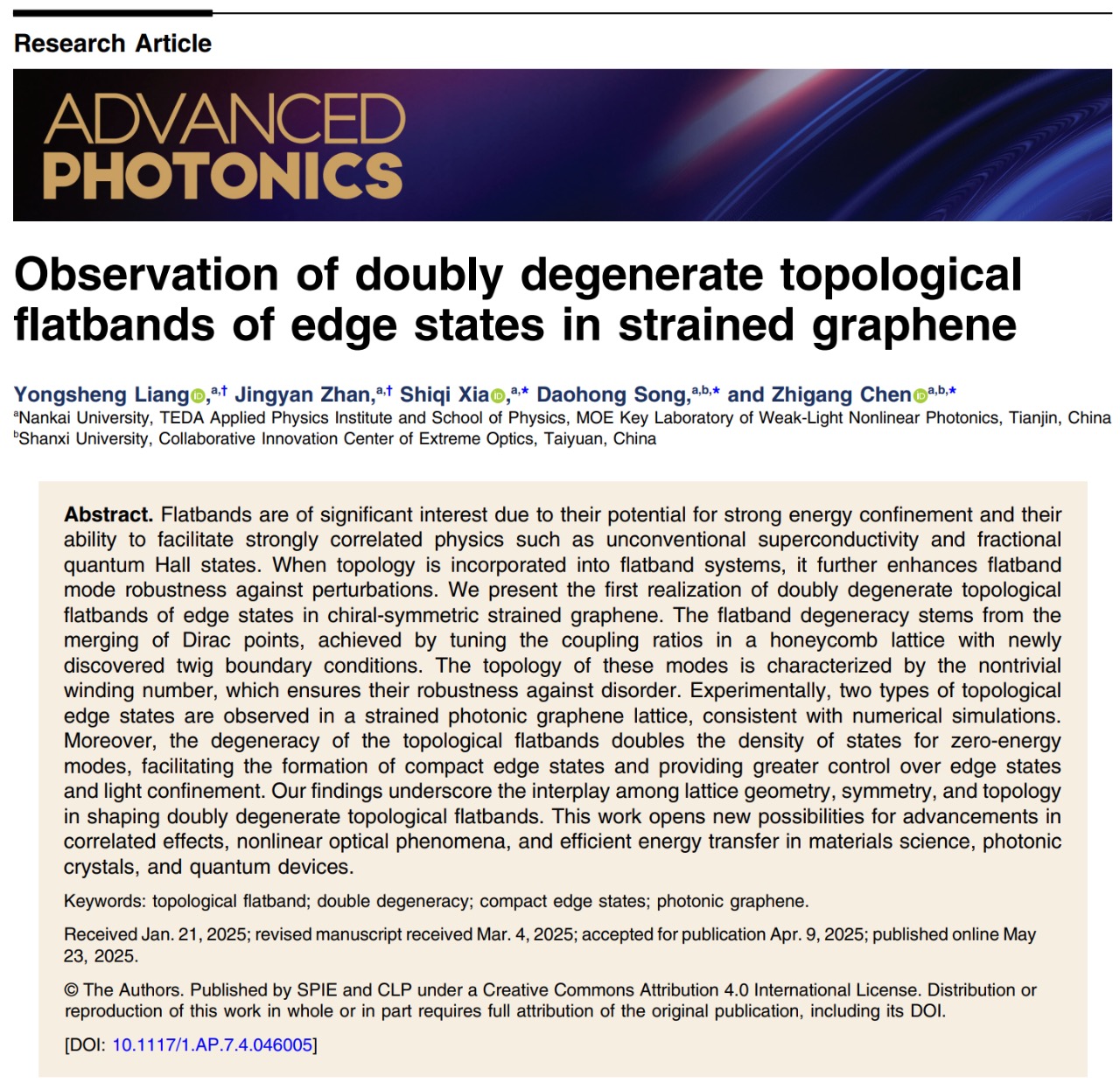 Adv. Photon. | “光子石墨烯”的平带调控